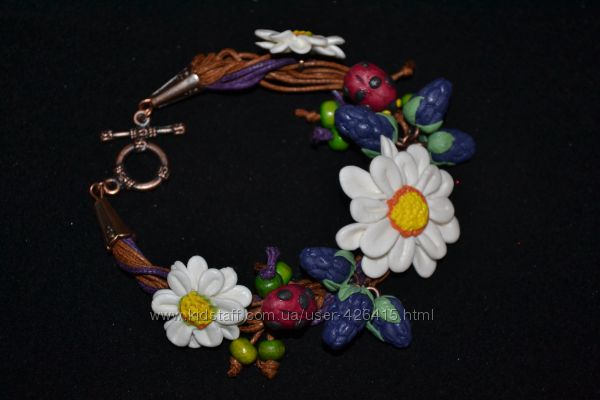 Браслет Лісова Мавка. Цена 80,00грн. Описание: полимерная глина (произв.: Япония, нетоксичная), вощеный хлопковый шнур, качественная фурнитура(медь), деревянные бусины. Длина 20,5 см.