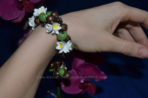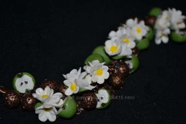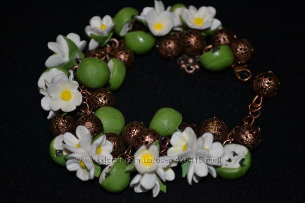 Браслет Яблоневый Сад. Цена 125,00грн. Описание: полимерная глина (произв.: Япония, нетоксичная), качественная фурнитура(цвет: медь). Длина регулируется.