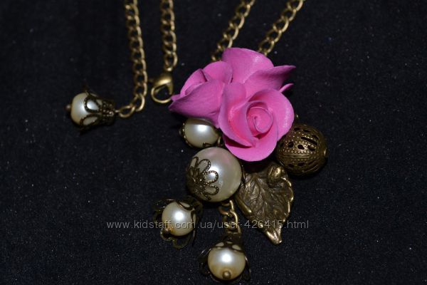 Подвеска Винтаж. Цена 65,00грн.Описание: полимерная глина (произв.: Япония, нетоксичная), качественная фурнитура(цвет:бронза), жемчужные бусины(стекло). Длина цепочки регулируется, длина подвески 5,5см