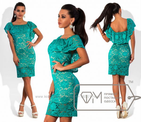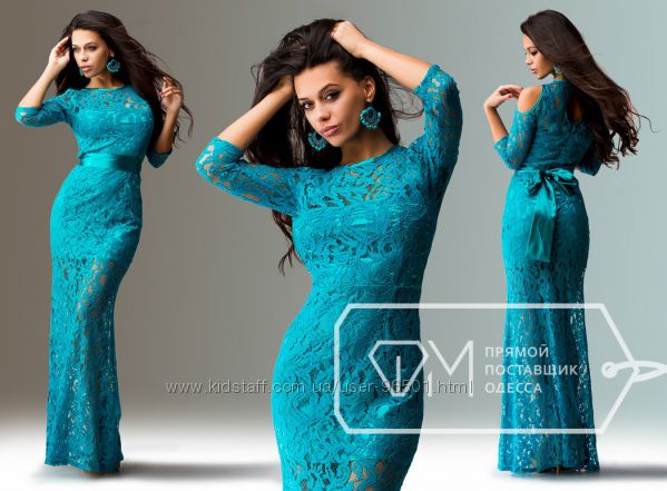 Модель № : 1702 ( цвет может отличаться - ближе бирюзовому) Цена: опт - 580 грн Размеры: S,M,L Ткань: гипюр + атлас Длина: 77 см подклад, 150 см полностью