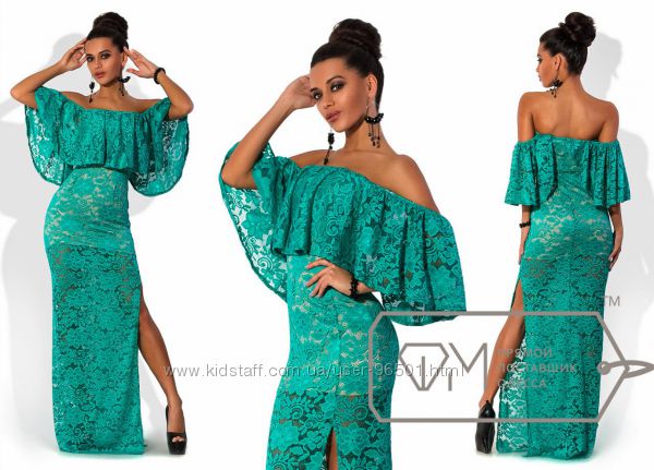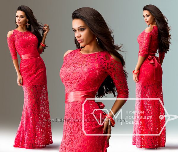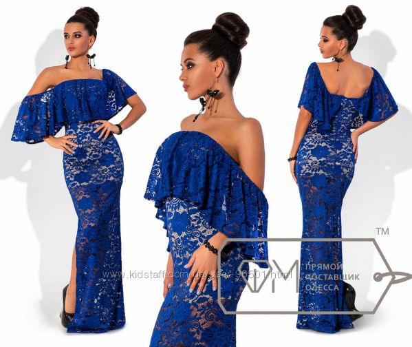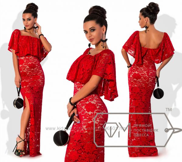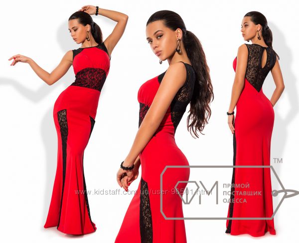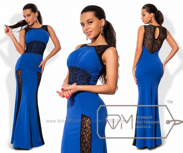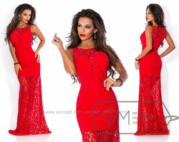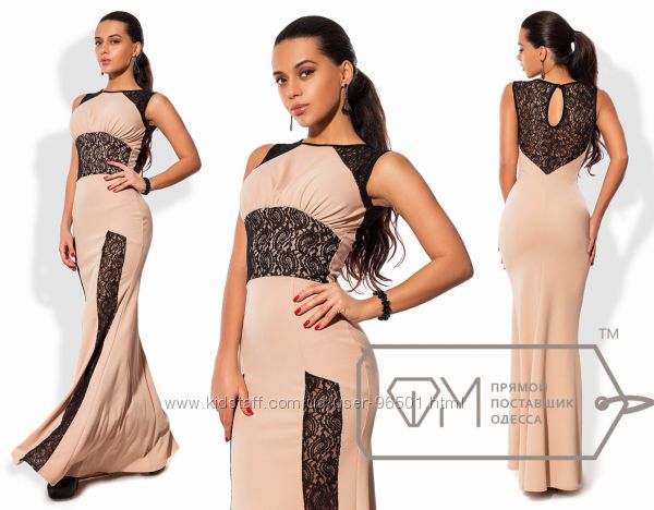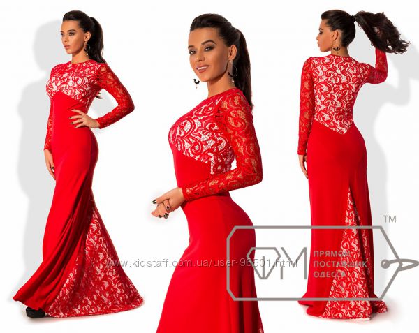 Модель № : 8341 Цена: опт 530 грн Размеры: S, M, L Ткань: креп-дайвинг + стрейч-гипюр Длина: 150 см