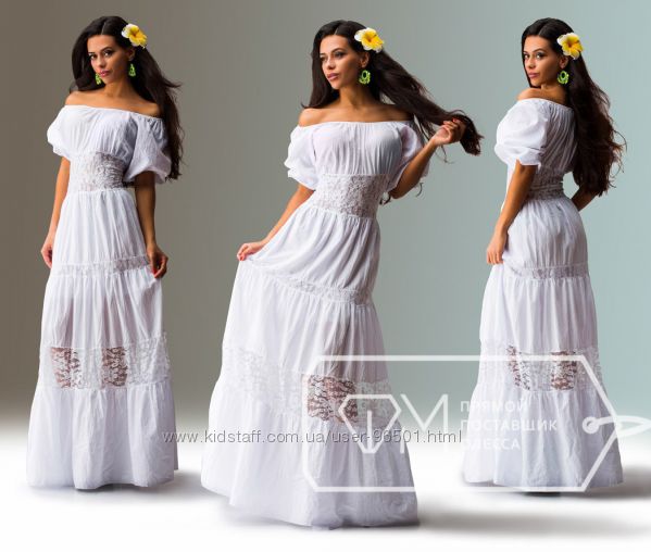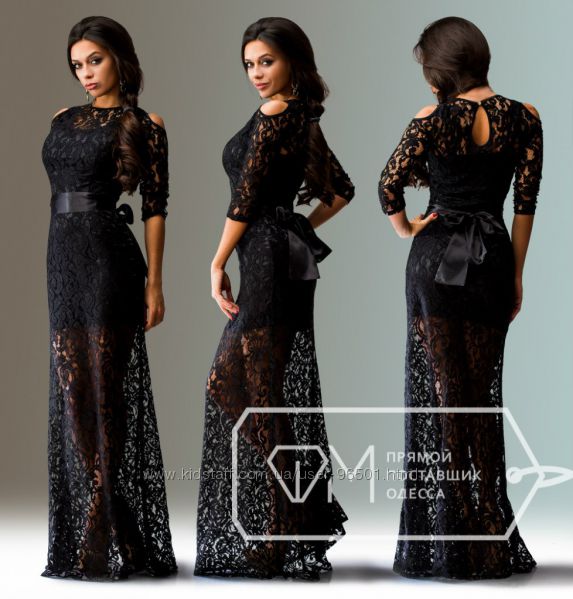 Модель № : 3145 Цена: опт 455 грн Размеры: S,M,L Ткань: дайвинг + гипюр + сетка + бисер Длина: 150 см