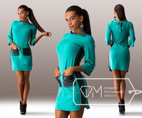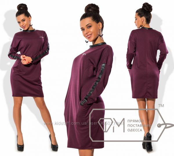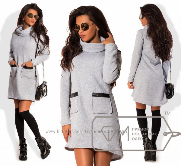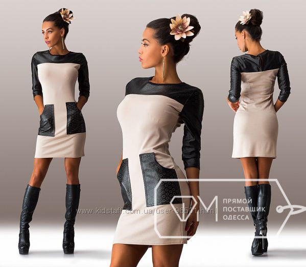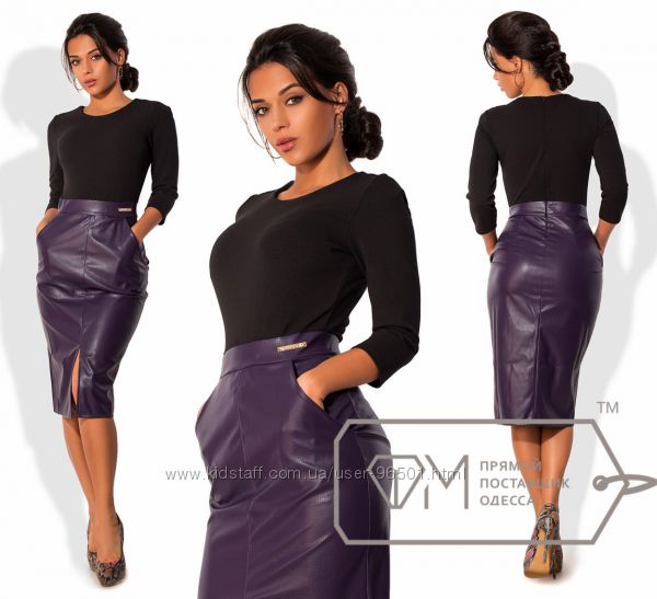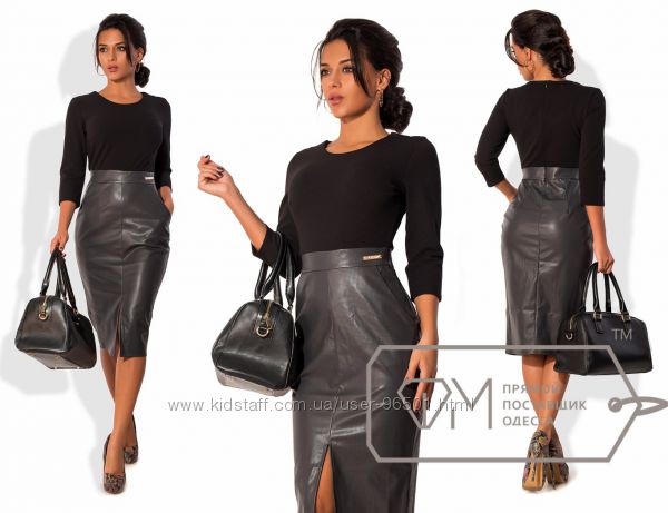 Модель № : 8283 Цена: опт 425 грн Размеры: S-M, M-L Ткань: трикотаж Джерси + экокожа Длина: 88 см, рукав 4759 см