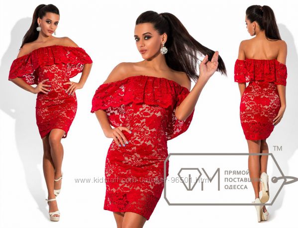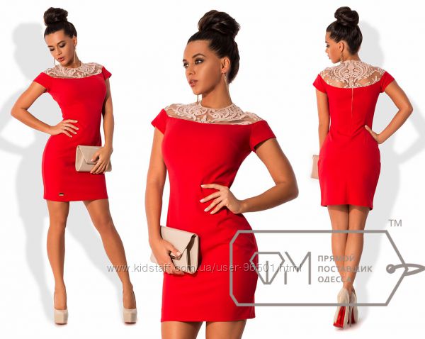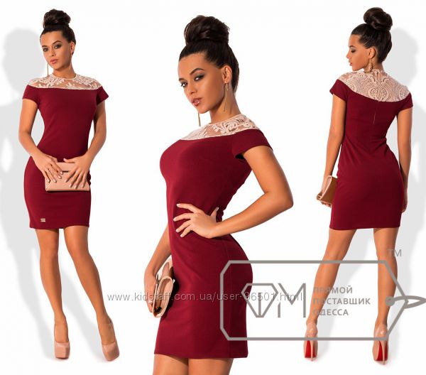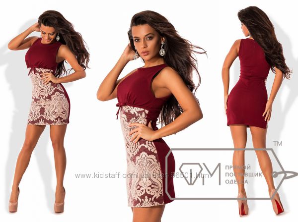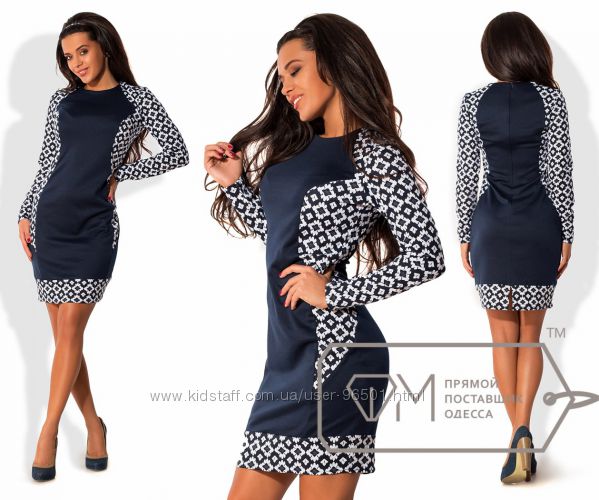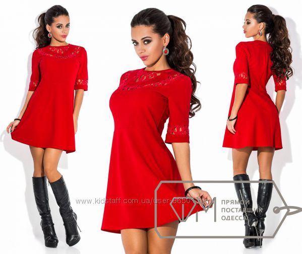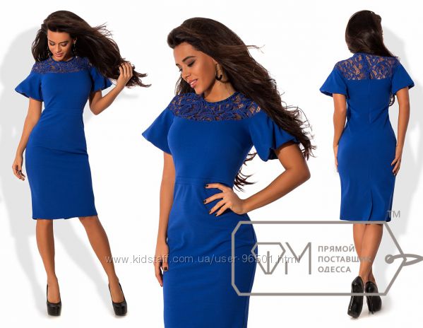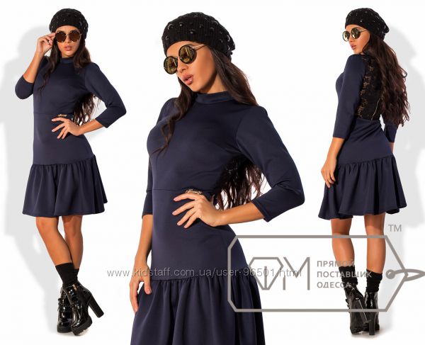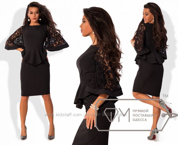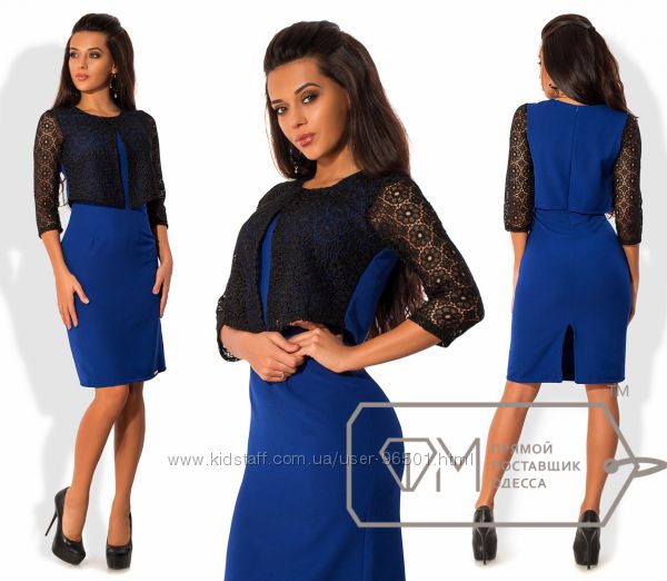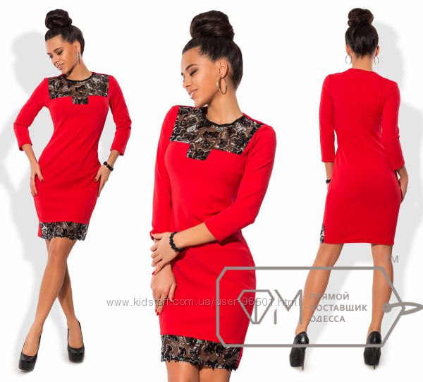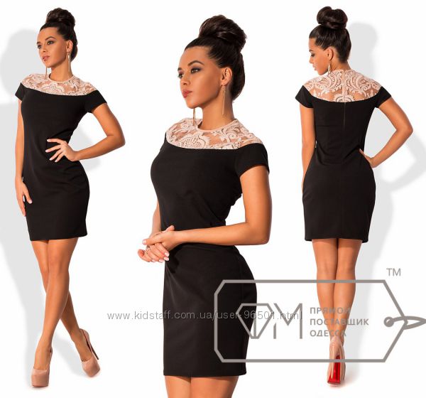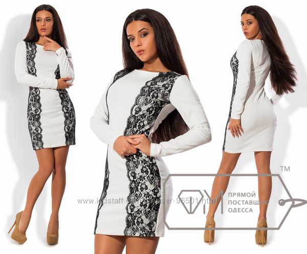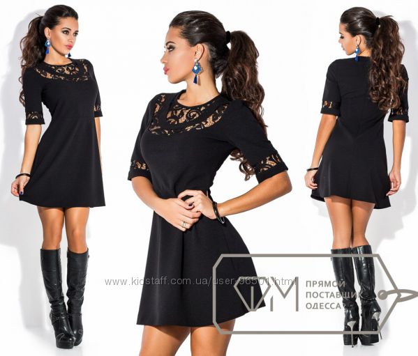 Модель № : 8203 Цена: опт 430 грн Размеры: S, M, L Ткань: дайвинг + набивной гипюр Длина: 88 см