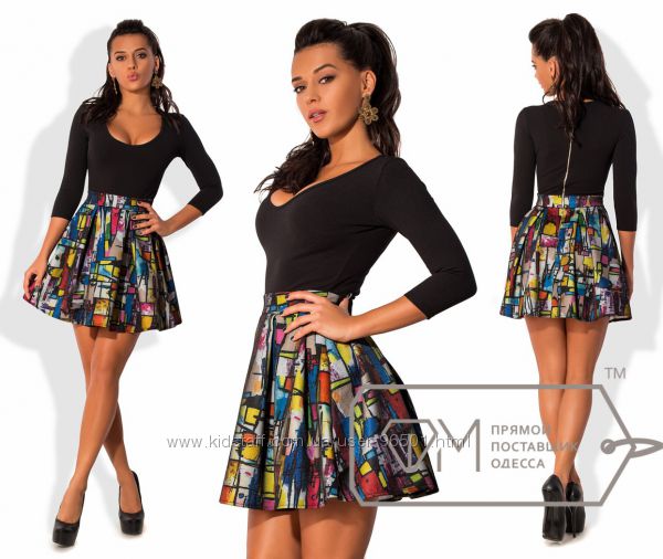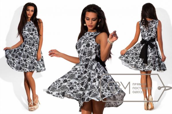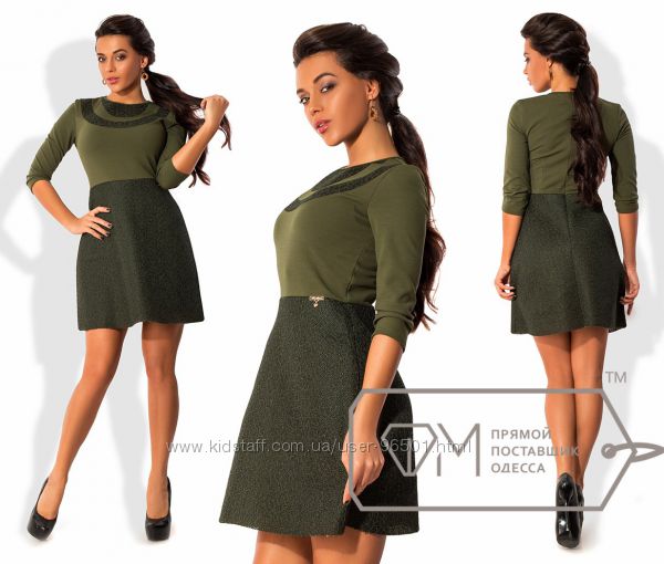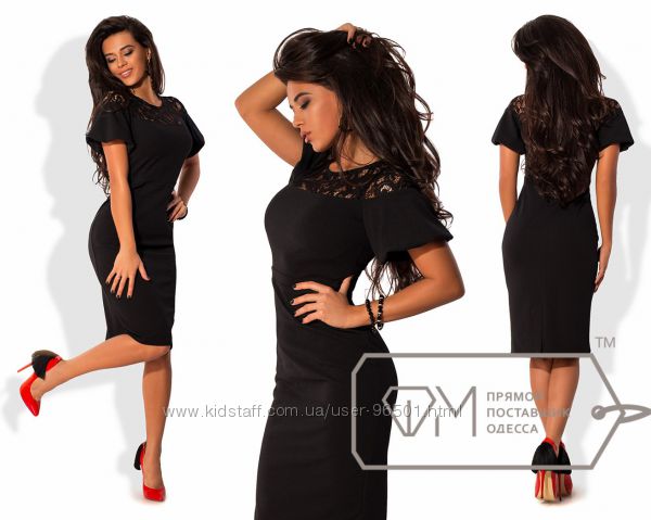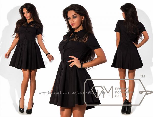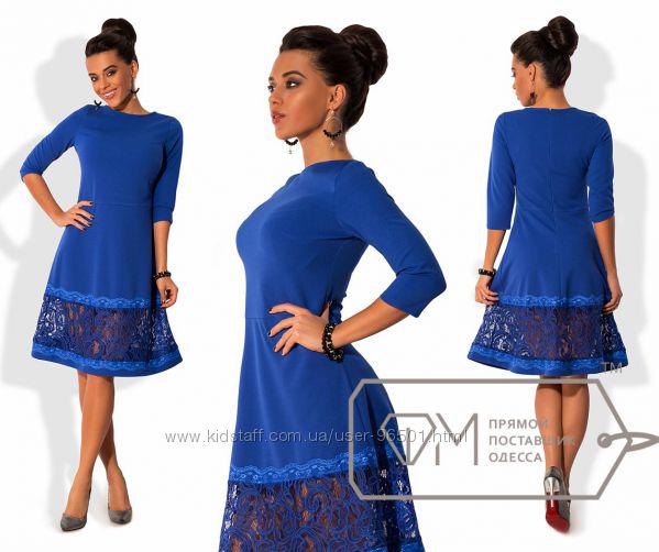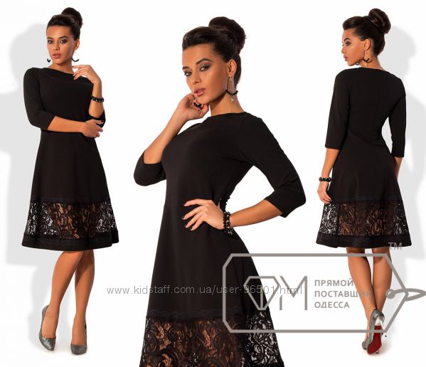 Модель № : 8201 Цена: опт 430 грн Размеры: S, M, L Ткань: дайвинг + набивной гипюр Длина: 88 см