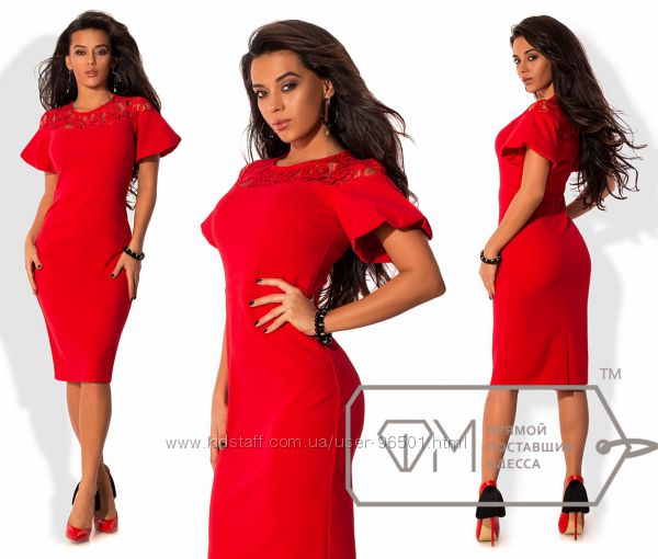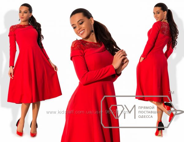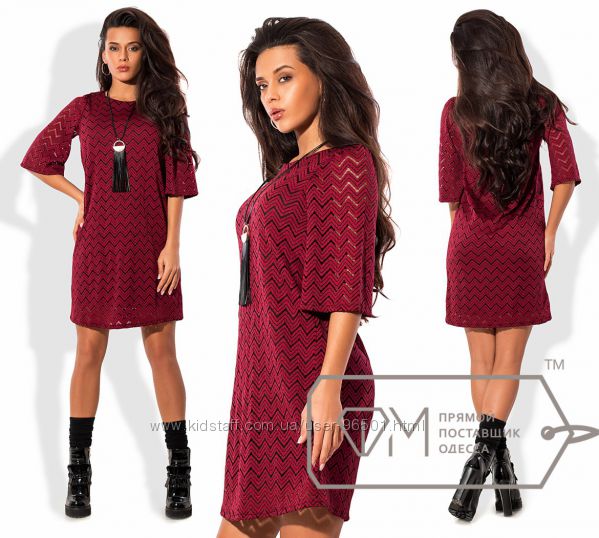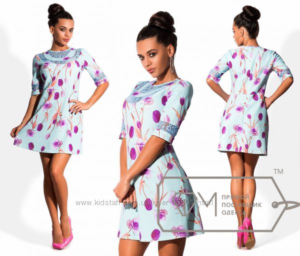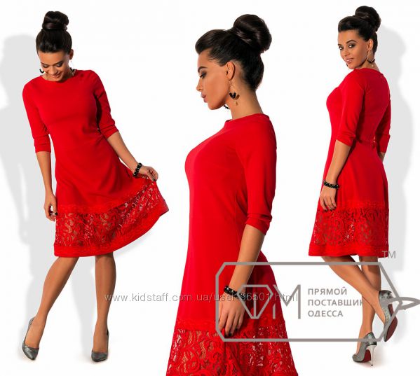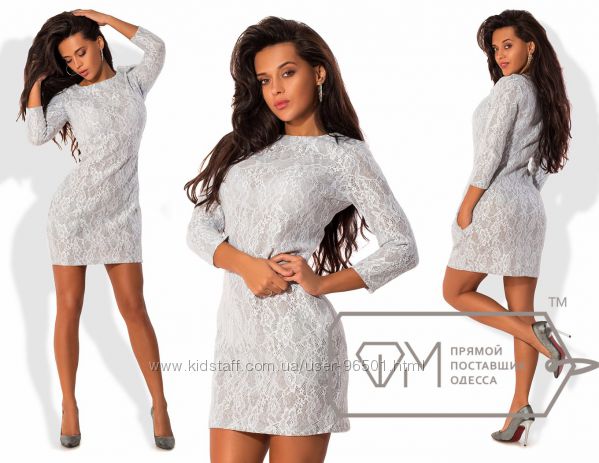 Модель № : 8202 Цена: опт 430 грн Размеры: S, M, L Ткань: дайвинг + набивной гипюр Длина: 88 см
