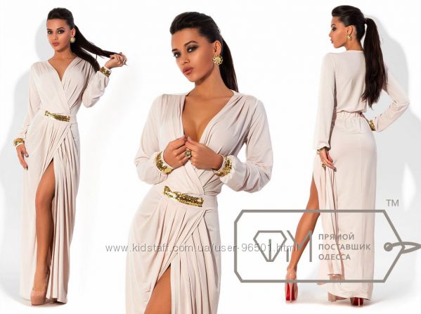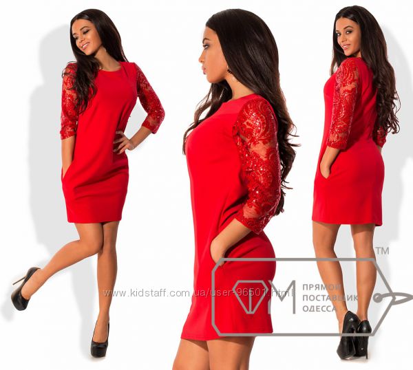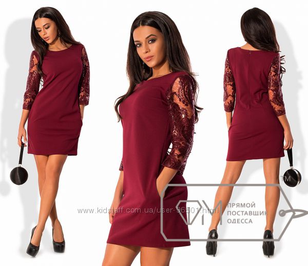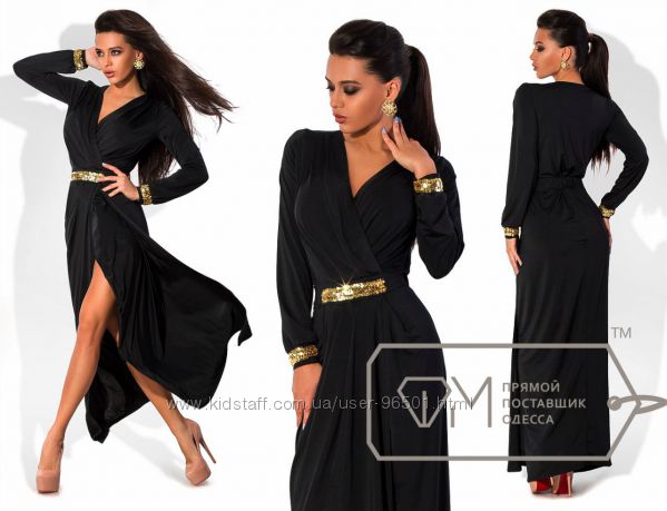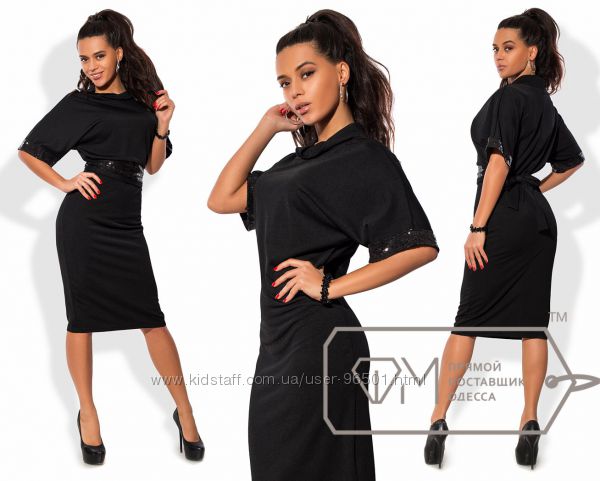 Модель № : 8212 Цена: опт 480 грн Размеры: S, M, L Ткань: креп-дайвинг + пайетка Длина: 99 см, рукав 4660 см