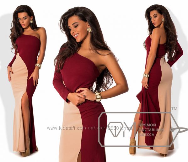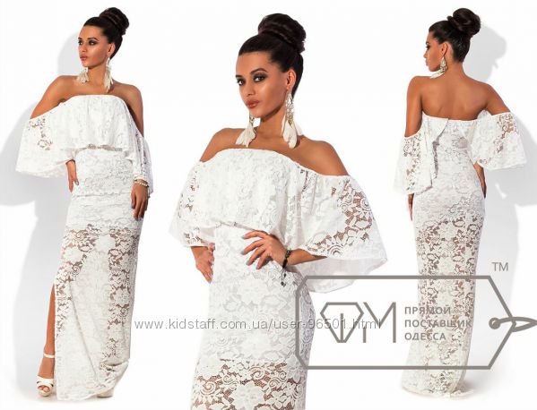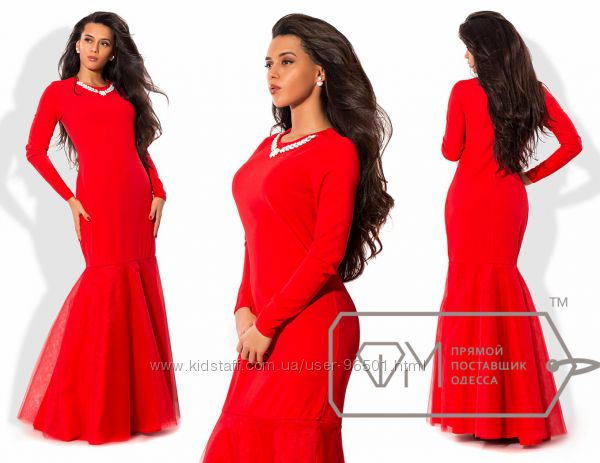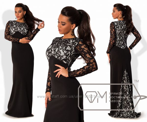 Модель № : 8342 Цена: опт 530 грн Размеры: S, M, L Ткань: креп-дайвинг + стрейч-гипюр Длина: 150 см