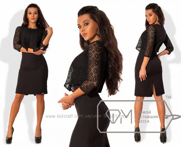 Модель № : 3260 Цена: опт 400 грн Размеры: S,M,L Ткань: дайвинг + гипюр Длина: 106 см, рукав 4759 см