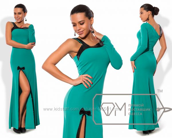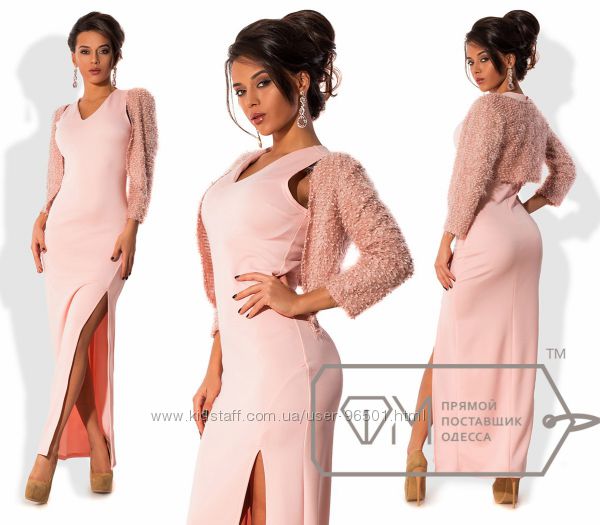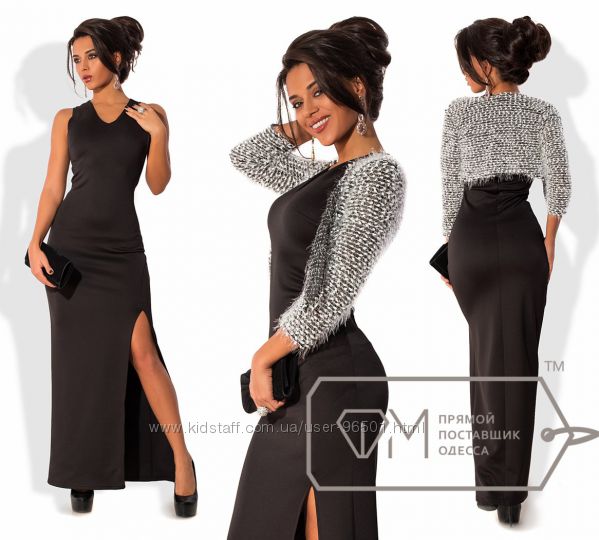 Модель № : 8211 Цена: опт 480 грн Размеры: S, M, L Ткань: креп-дайвинг + пайетка Длина: 99 см, рукав 4660 см