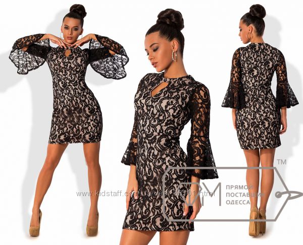 Модель № : 8171 Цена: опт 380 грн Размеры: S, M, L Ткань: французский трикотаж + гипюр Длина: 87 см, рукав 4760 см