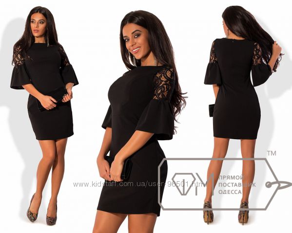 Модель № : 8174 Цена: опт 380 грн Размеры: S, M, L Ткань: французский трикотаж + гипюр Длина: 87 см, рукав 4760 см