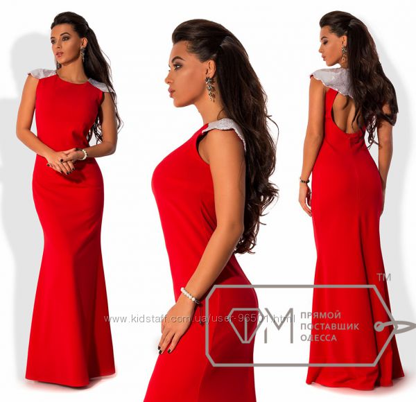 Модель № : 8328 Цена: опт 410 грн Размеры: S, M, L, XL Ткань: креп-дайвинг + пайетка на сетке Длина: 8290 см
