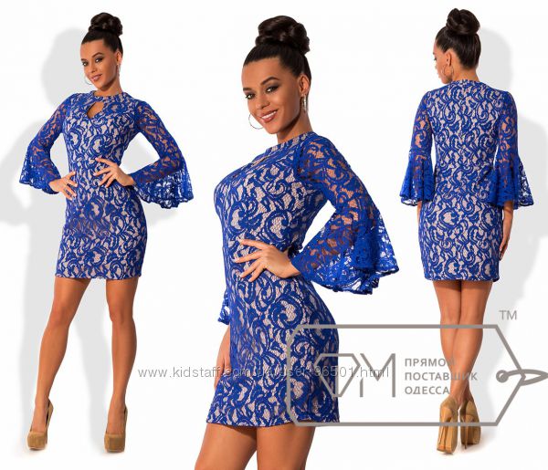 Модель № : 8173 Цена: опт 380 грн Размеры: S, M, L Ткань: французский трикотаж + гипюр Длина: 87 см, рукав 4760 см