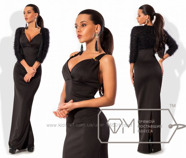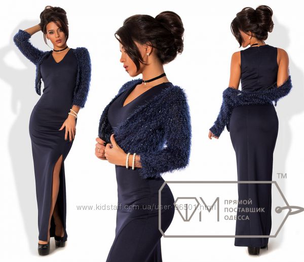 Модель № : 8145 Цена: опт 380 грн Размеры: S, M, L, XL Ткань: дайвинг, болеро вязка с люрексовой нитью Длина: 145 см, болеро 3042 см