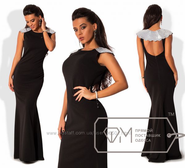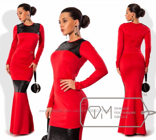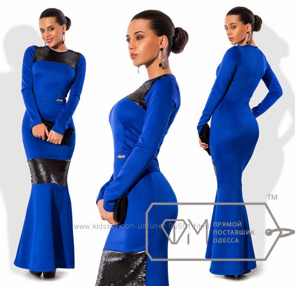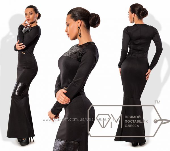 Модель № : 8330 Цена: опт 410 грн Размеры: S, M, L, XL Ткань: креп-дайвинг + пайетка на сетке Длина: 8290 см