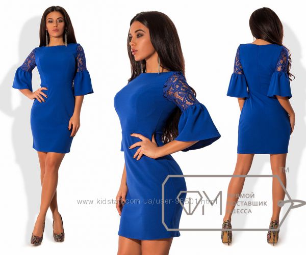 Модель № : 3257 Цена: опт 400 грн Размеры: S,M,L Ткань: дайвинг + гипюр Длина: 106 см, рукав 4759 см