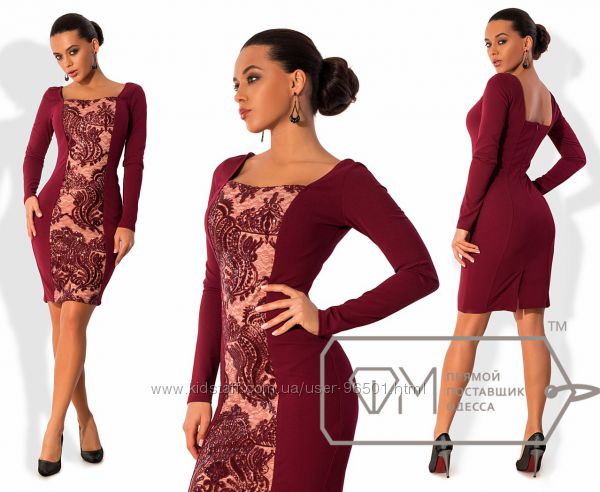Модель № : 3258 Цена: опт 400 грн Размеры: S,M,L Ткань: дайвинг + гипюр Длина: 106 см, рукав 4759 см