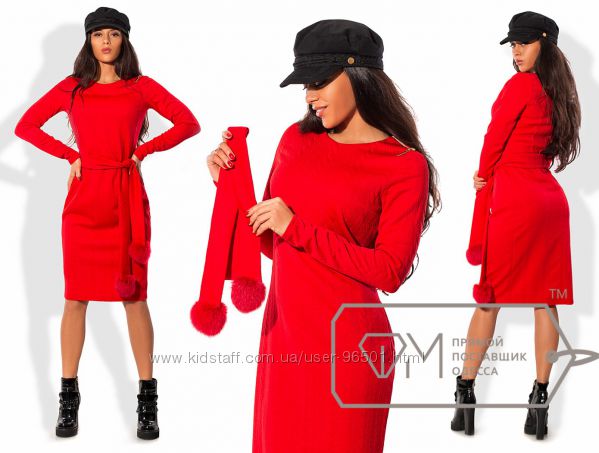 Модель № : 8214 Цена: опт 480 грн Размеры: S, M, L Ткань: трикотаж вязка коса, помпоны натуральный мех Длина: 100 см, рукав 4660 см