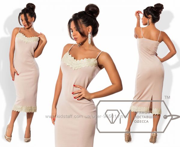 Модель № : 8200 Цена: опт 535 грн Размеры: S, M, L Ткань: дайвинг + французское кружево Длина: 83 см