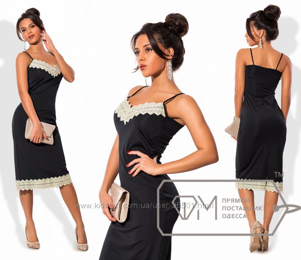 Модель № : 8193 Цена: опт 405 грн Размеры: S, M, L Ткань: дайвинг + кружево Длина: 110 см