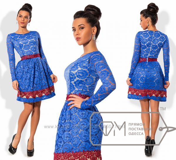 Модель № : 8147 Цена: опт 400 грн Размеры: S, M, L, XL Ткань: дайвинг + гипюр Длина: 142 см