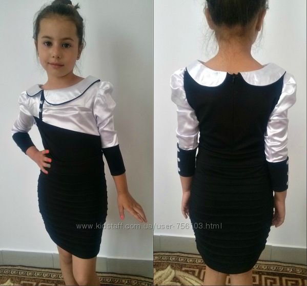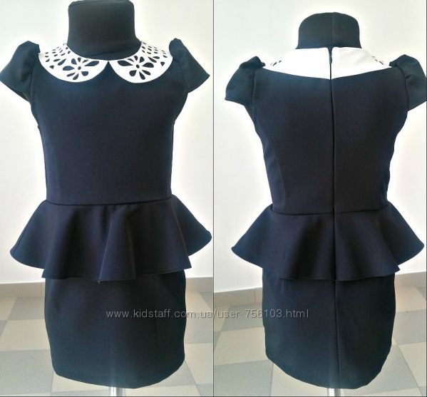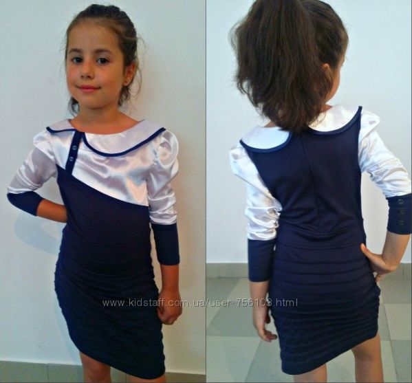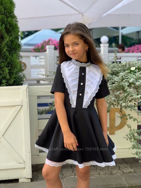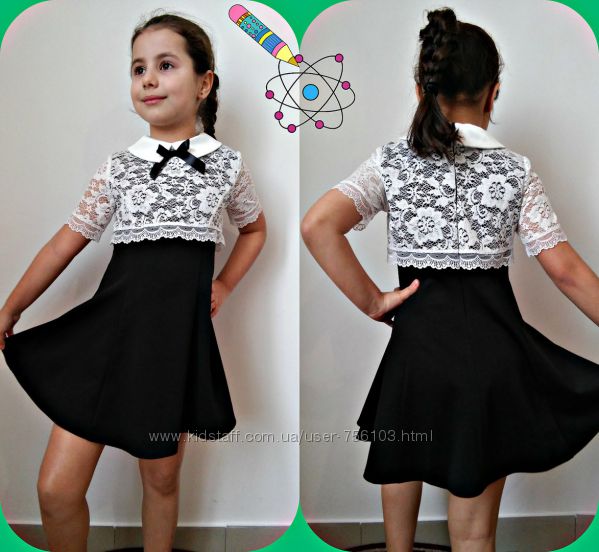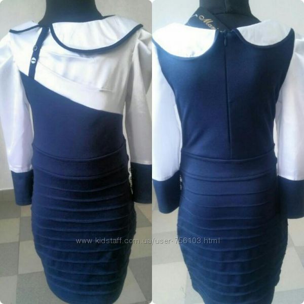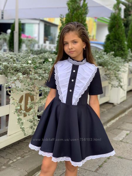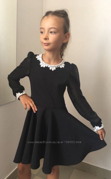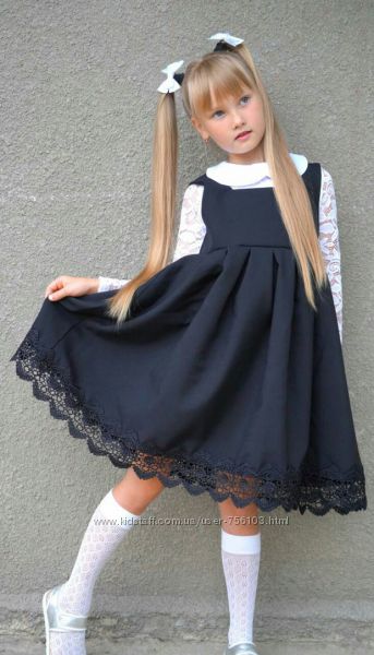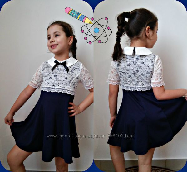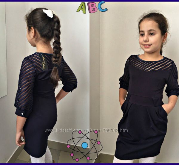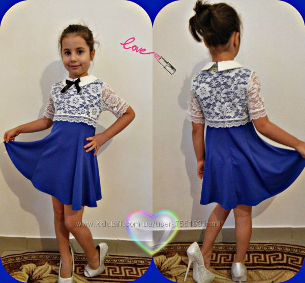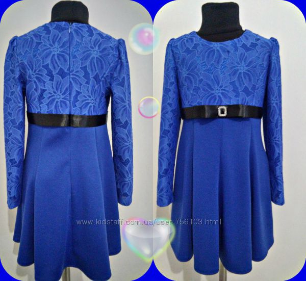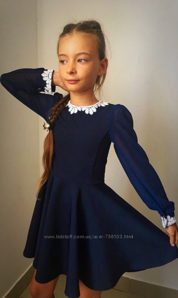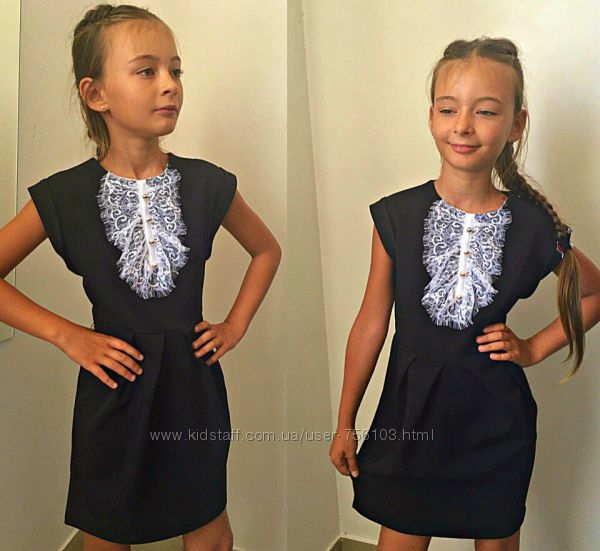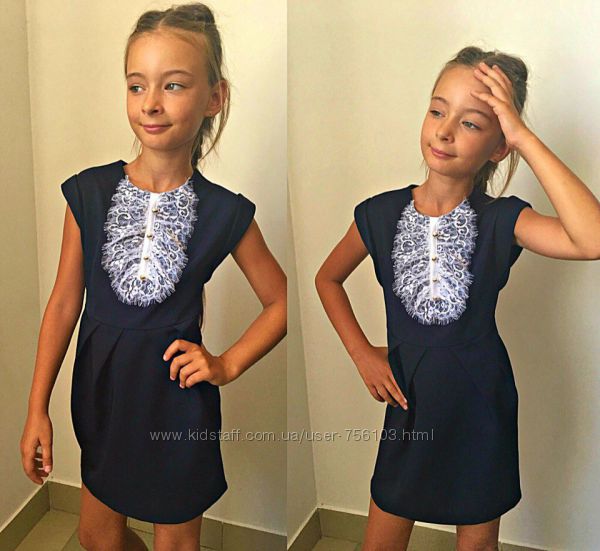 Мод 747 Ткань :мадонна чёрная и синяя Жабо х/б +качественное Кружево Сзади змейка Рост:122;128;134;140
