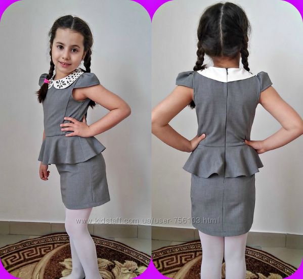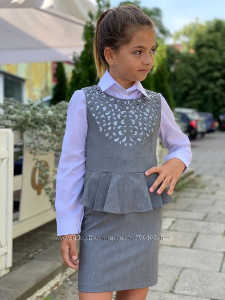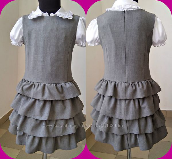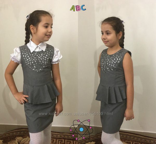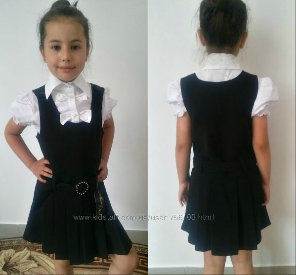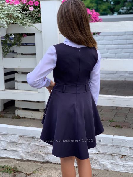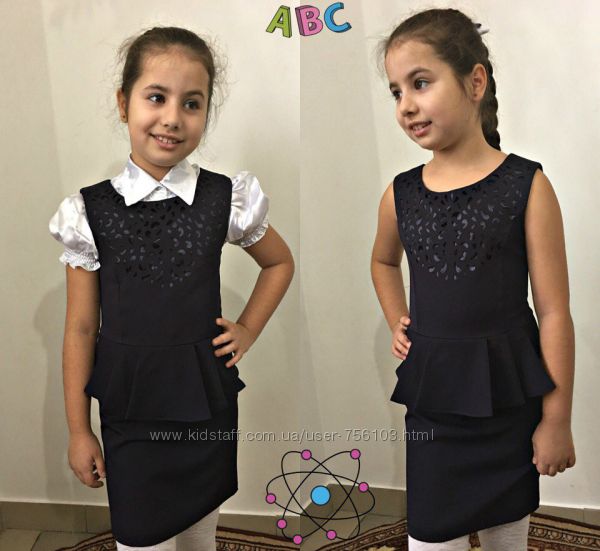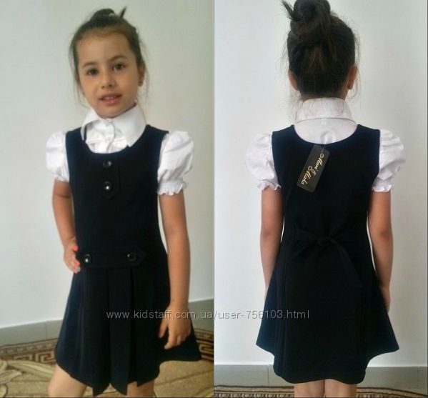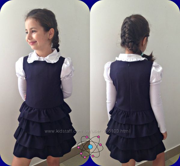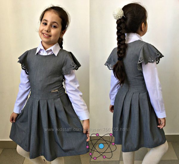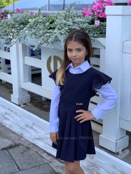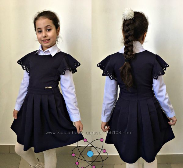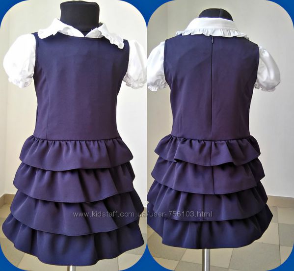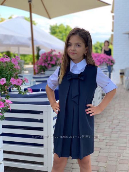 ШКОЛЬНЫЙ САРАФАН мод 630 ткань синяя .чёрная мадонна и тиар серый рост (116.122.128.134.140 см)