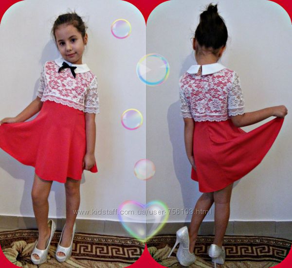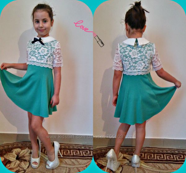 мод 624 рост 116:122:128:134:140 цвет: мята ,коралл, электрик, черный, темно синий ткань: французский трикотаж +дорогой гипюр