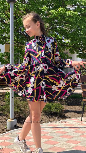 Детское платье №211 Ткань мемори. Размеры 128,134,140,146. Цвет черный,темно-синий,розовый