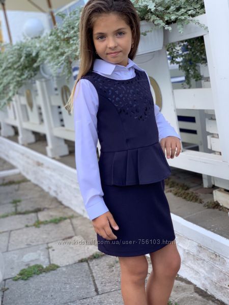 Ткань креп костюмка,вставка гипюр Размеры 128,134,140,146,152 Цвет темно-синий,чёрный