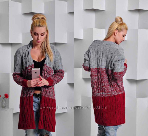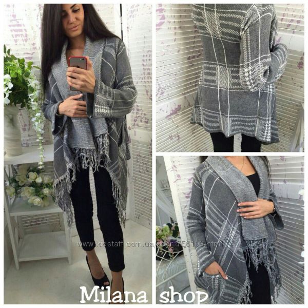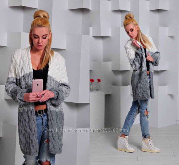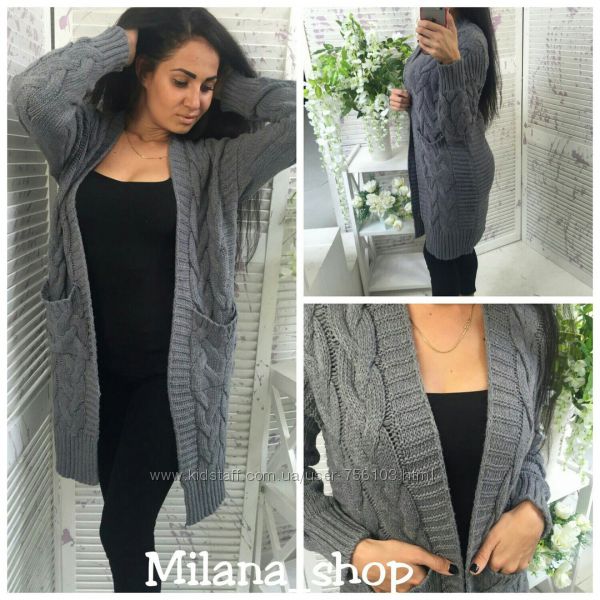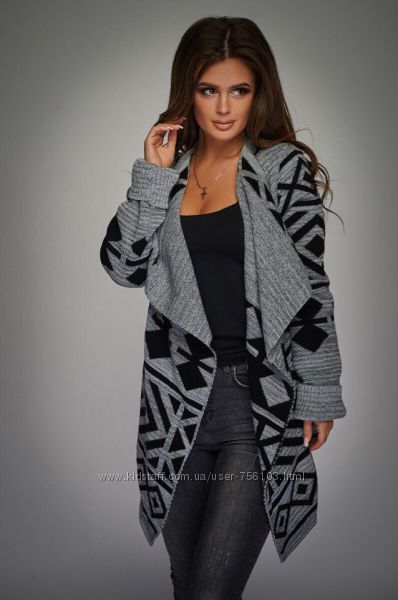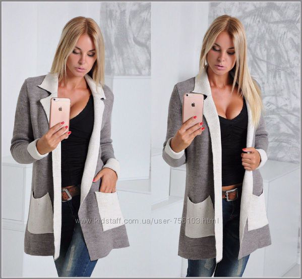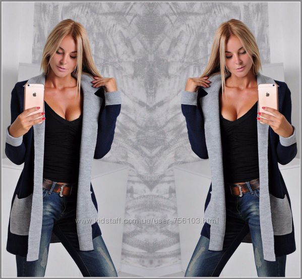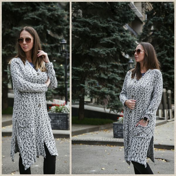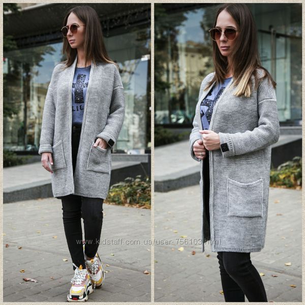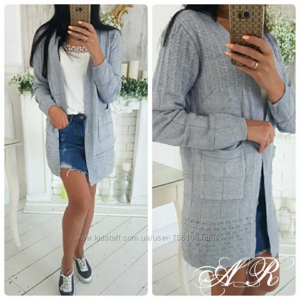 Кардиган с карманами Размер единый (42-46 ) ЦВЕТ: Темно-серый, Светло-серый. Ткань: Трикотаж (вязка)