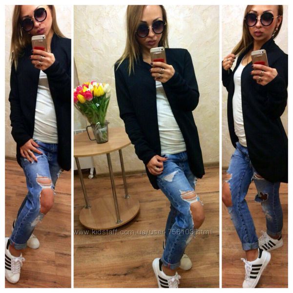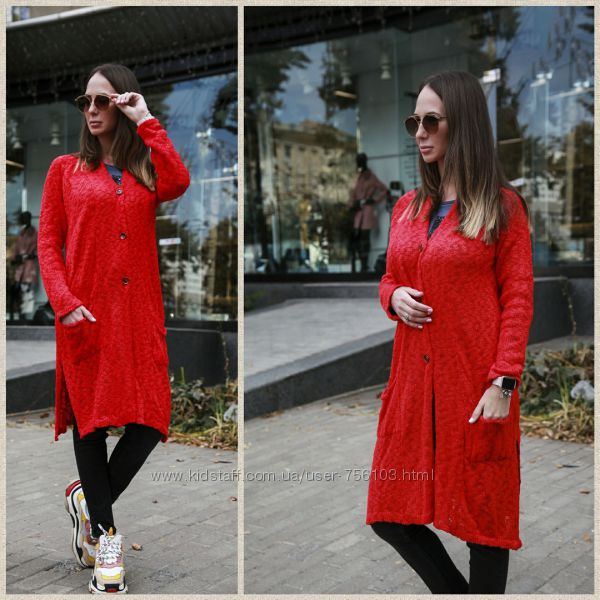 Кардиган (Фабричный Китай) качество люкс плотная машинная вязка размер универсальный 42/46 длина 80 см рукав 47 см цвет черный.красный.голубой.серый.лиловый