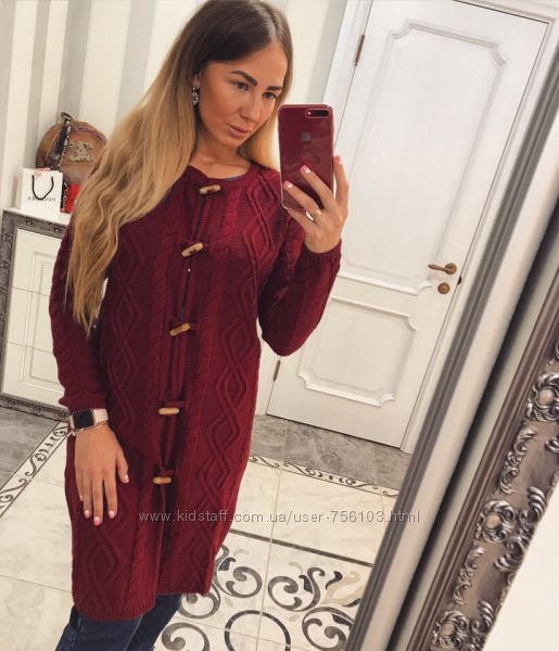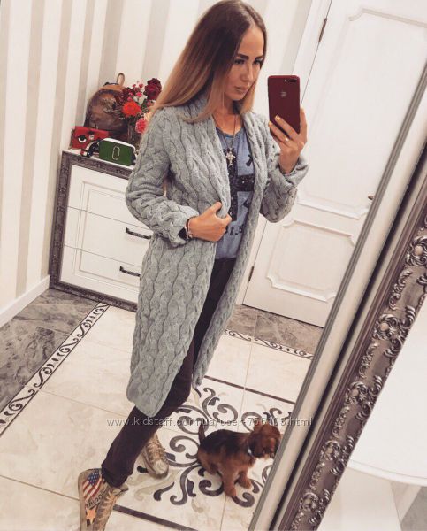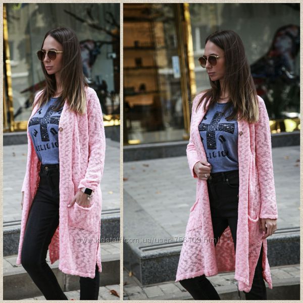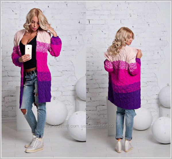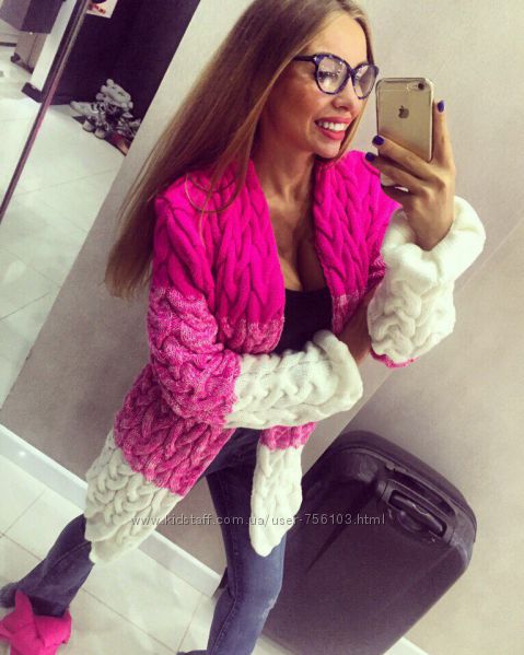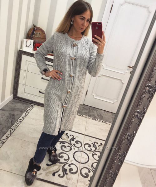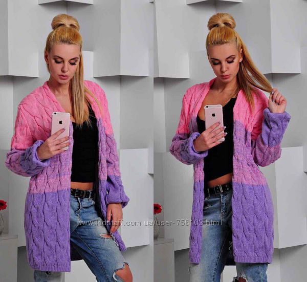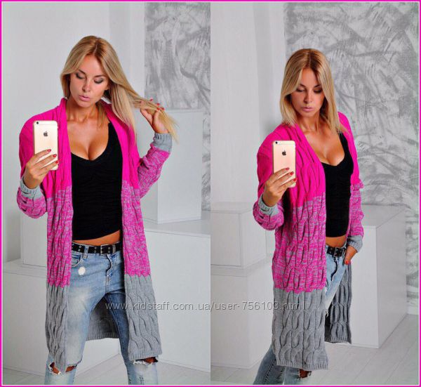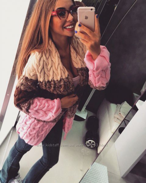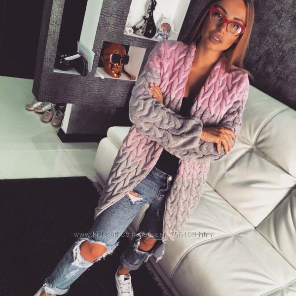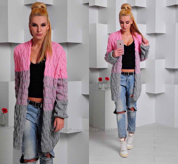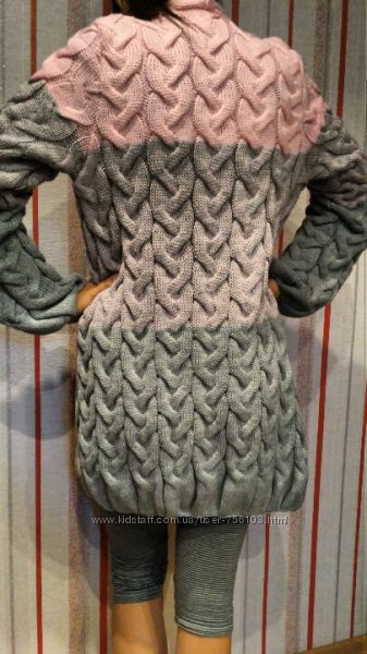 Цвет: нежно розовый, серый Размер: универсал (42-46) Длина: 95 см Рукав: 55 см Ткань: крупная машинная вязка Код товара: 1109