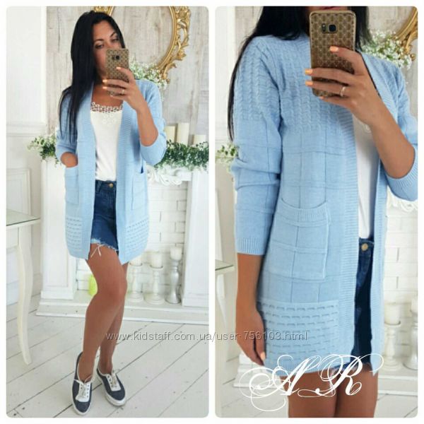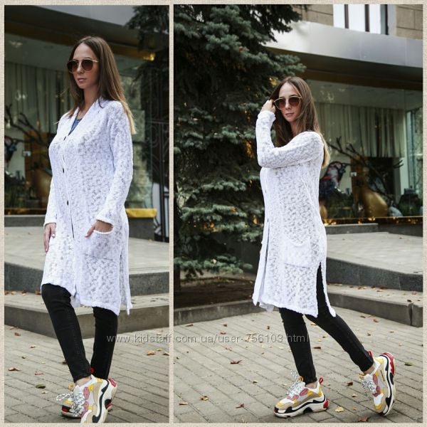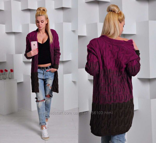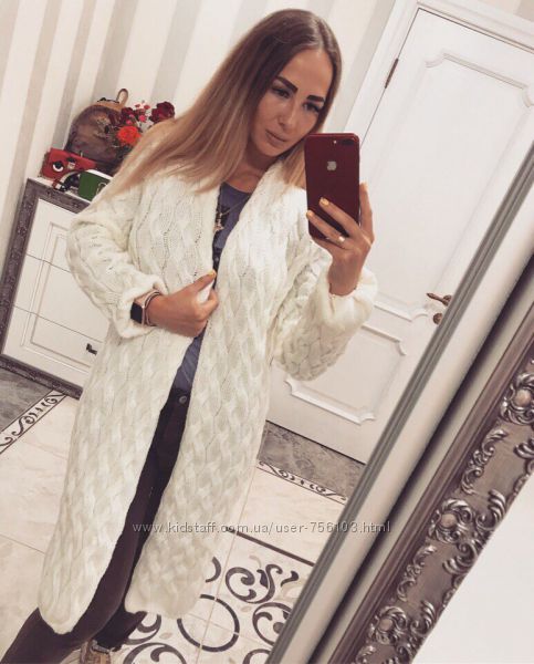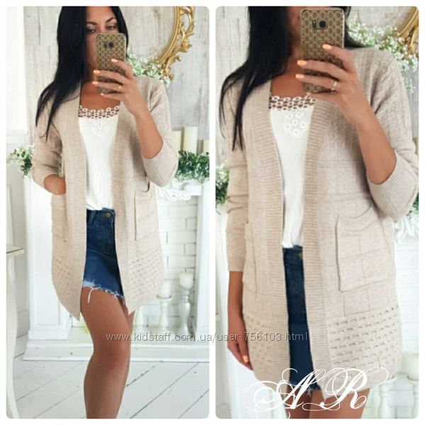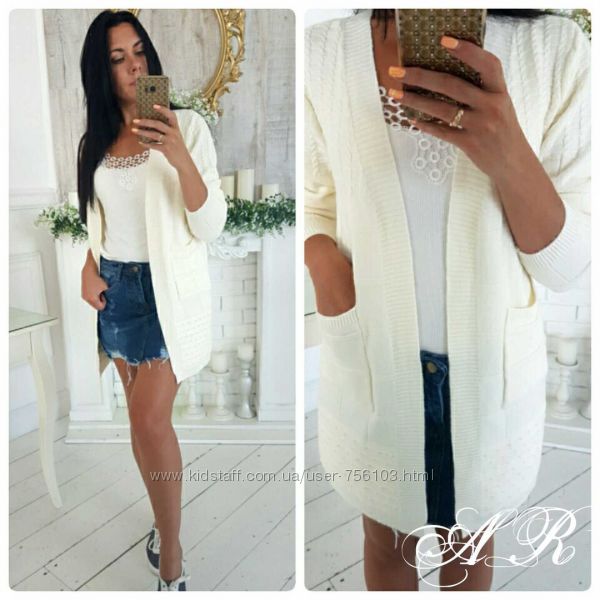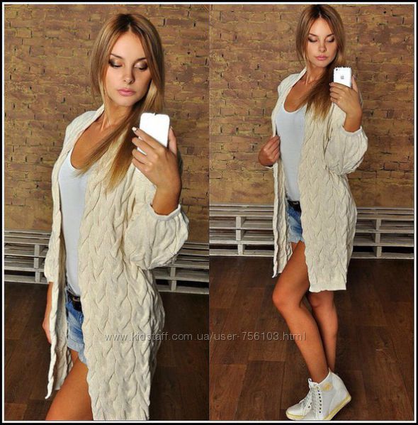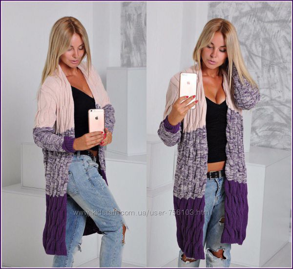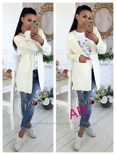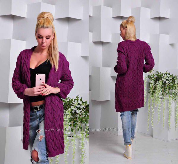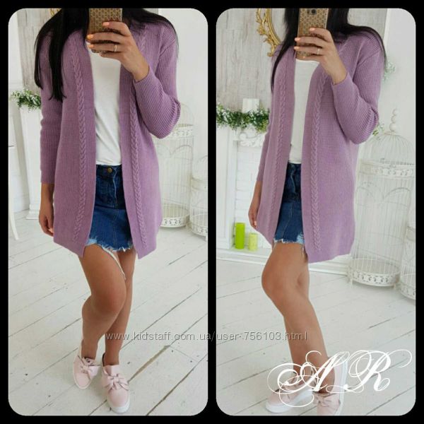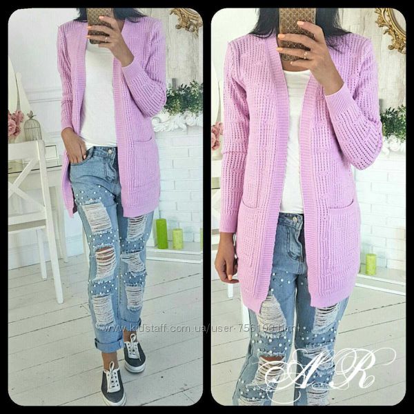 Кардиган (Фабричный Китай) структурная вязка.есть арманы очень мягенький и приятный к телу размер универсальный 42/46 длина 82 см рукав 60 см цвет беж.серый.лиловый.айвори