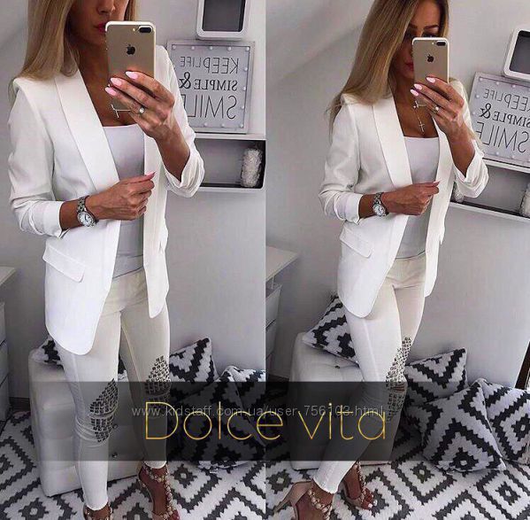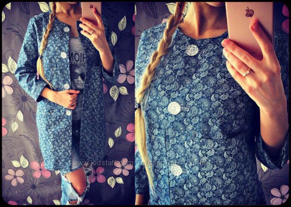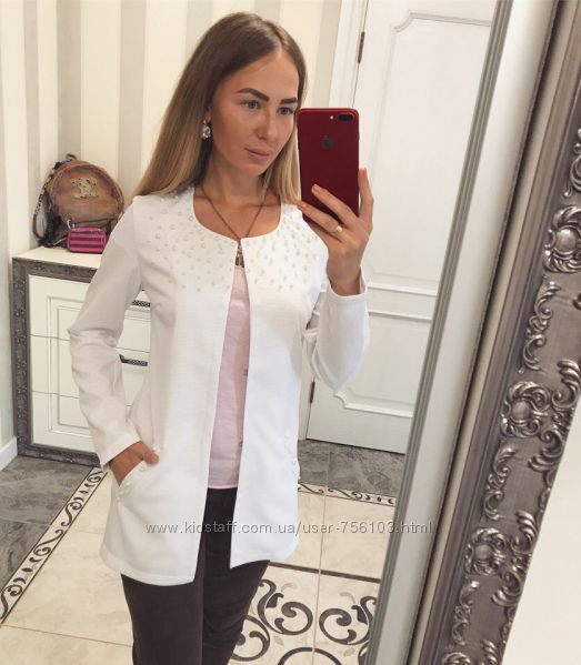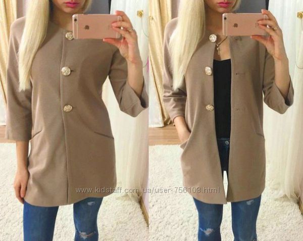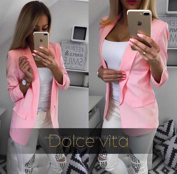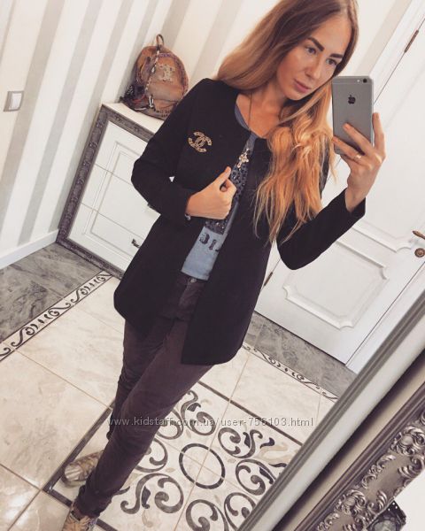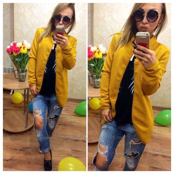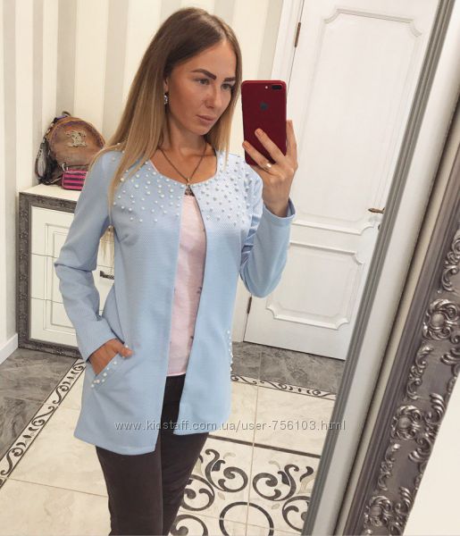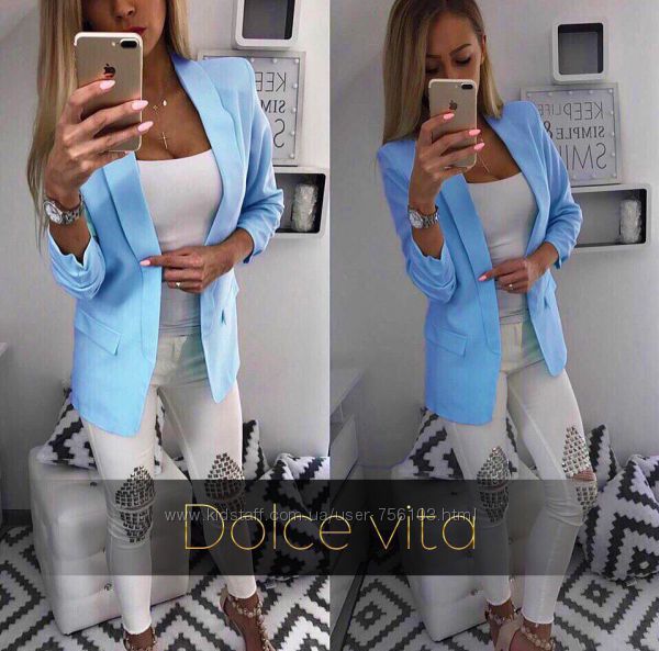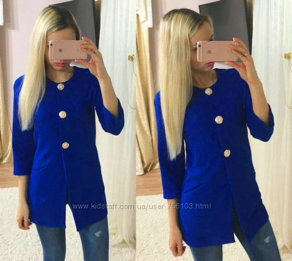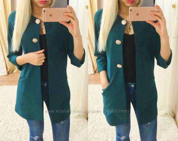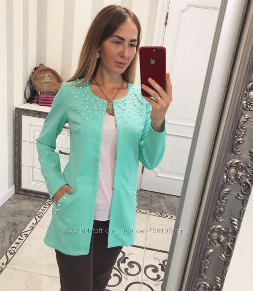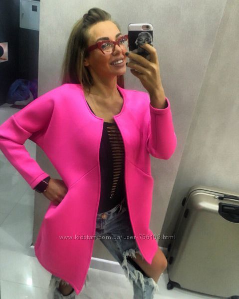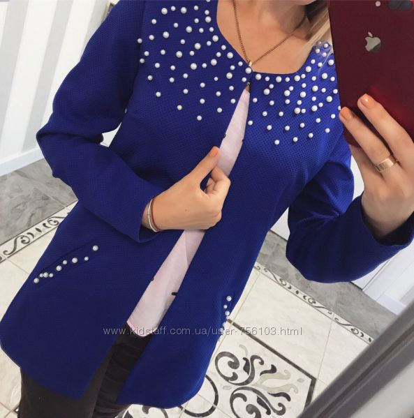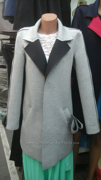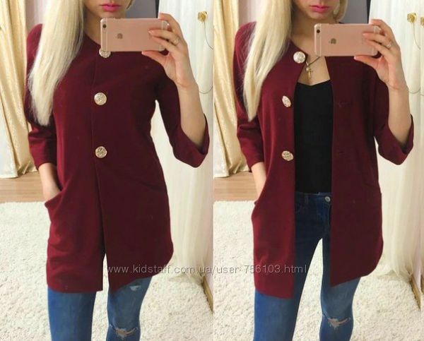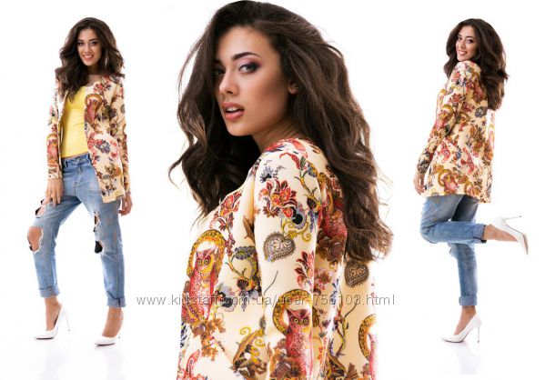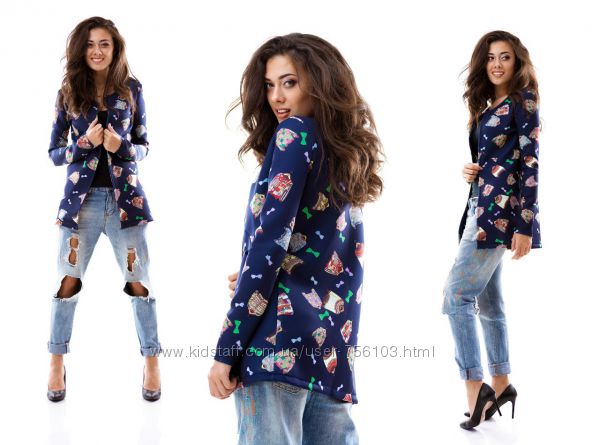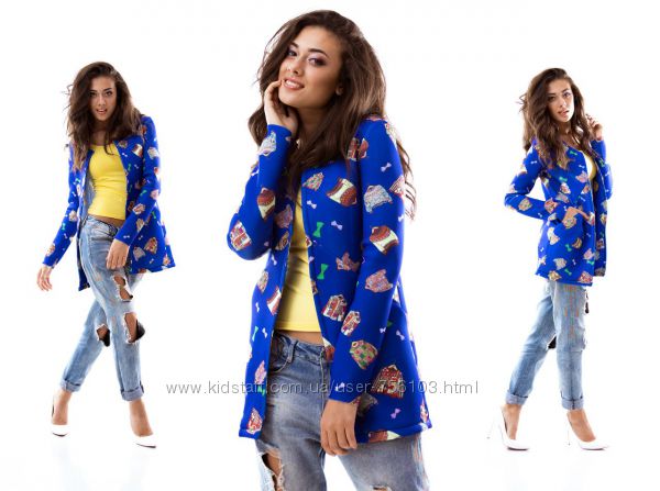 №1734 смл пиджак Ткань-неопрен двухсторонний Цвета-бордо,желтый,светло-серый,минт,темно-серый,темно-синий,электрик,принт сова-ваниль,белый,персик,принт свитер-темно-синий,электрик Длина изделия по спинке 75 см Длина рукава 66 см