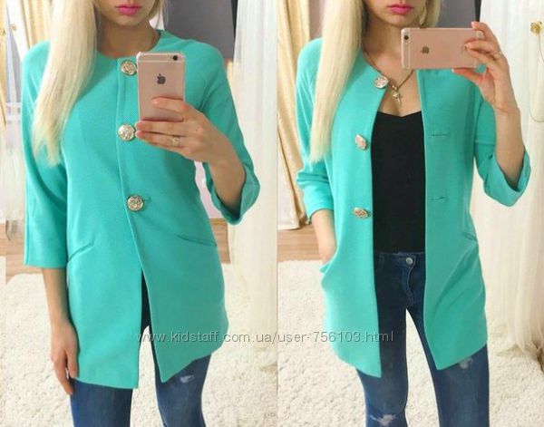 Жакет мод.1554. Цвета: ментол, персик, электрик, черный.Размеры 42-44;44-46. Ткань дайвинг.