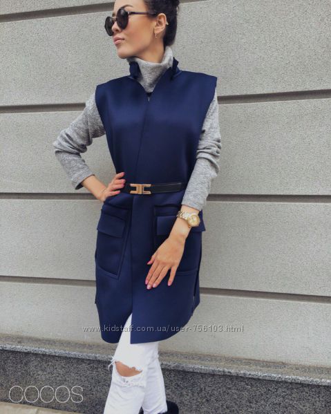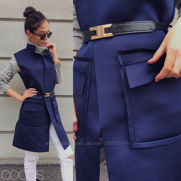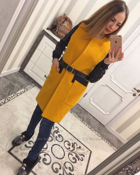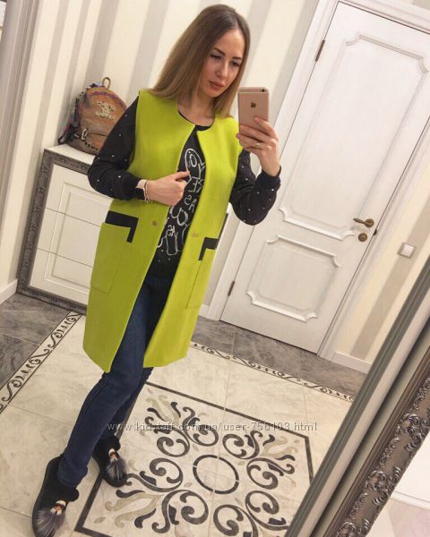 Жилет ткань- Кашемир Италия 64% Polyviscoze; 31% Viscoze; 5% LYCRA отделка- эко-кожа с перфорацией пояс в комплекте цвет- желтый, лайм, лосось рр. 42, 44, 46, 48