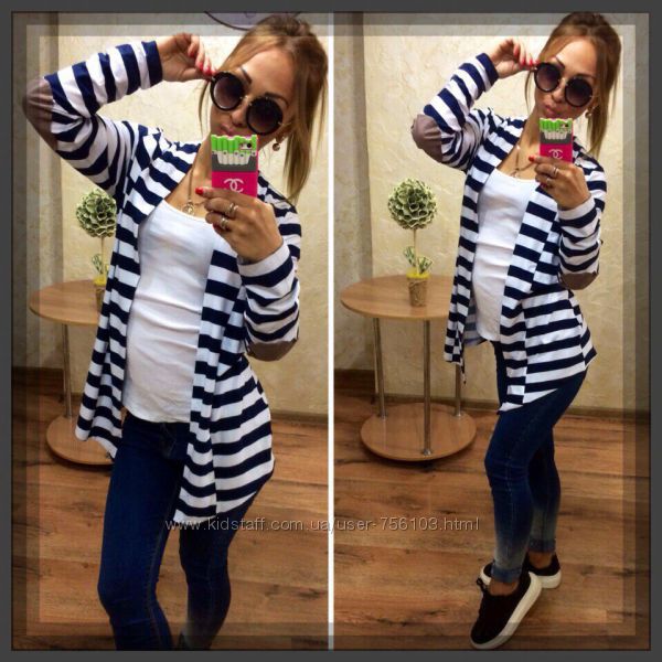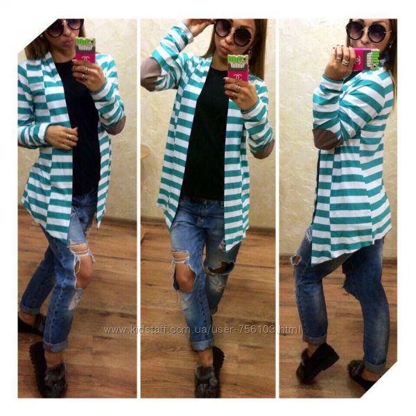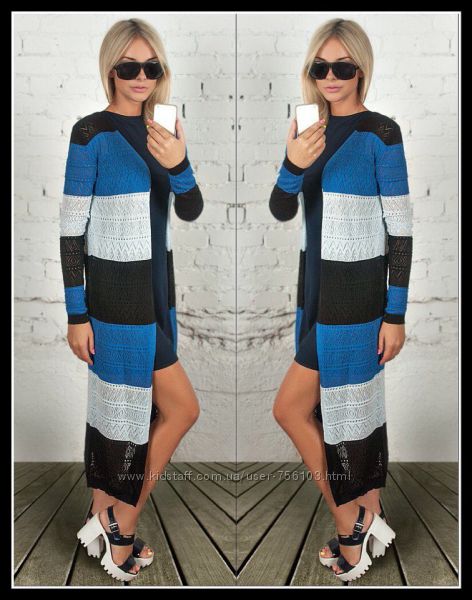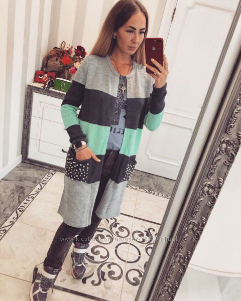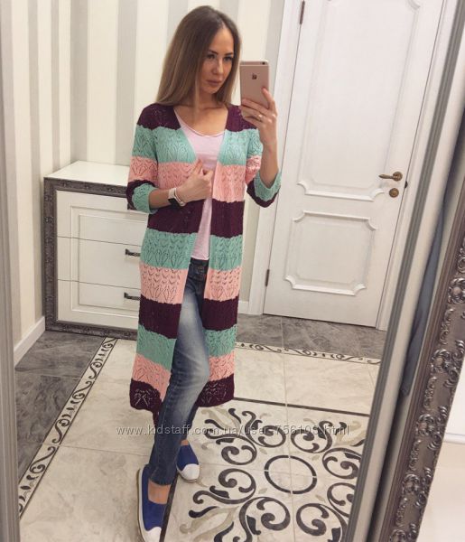 Кардиган Размер: 42-44,46-48,50-52 Ткань: трикотаж фактурный полоска Цвета: черный, ментол, горчица Длина 79 см