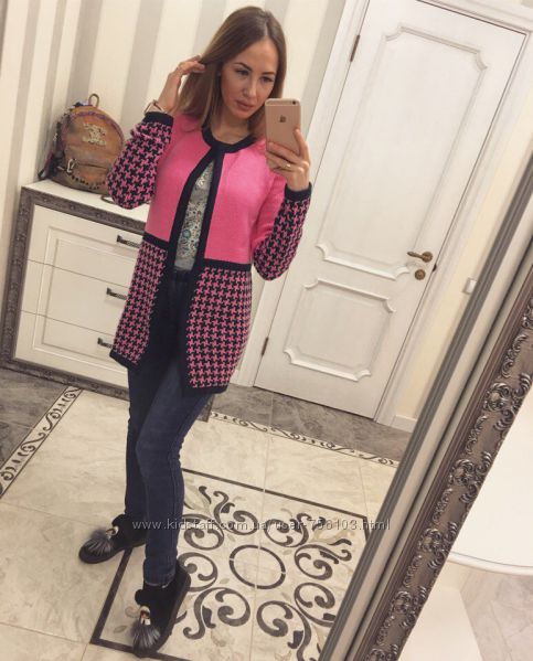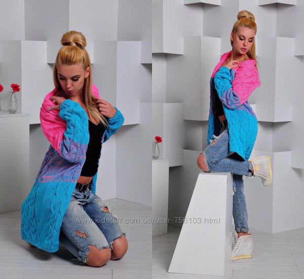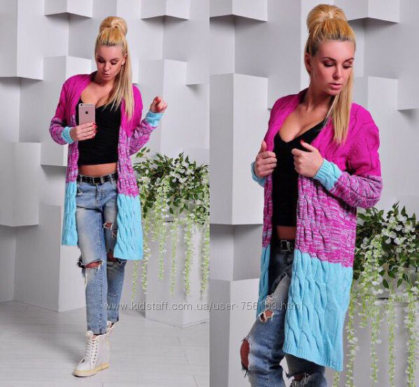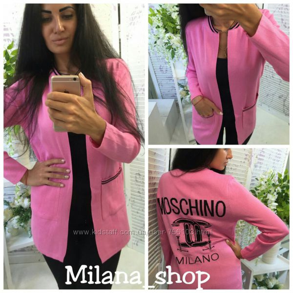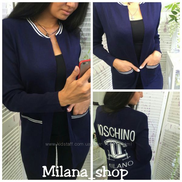 МД Код товара:1107 Кардиган MOSCHINO Размер единый ( 42-46 ). Длина: 75 см. Рукав : 62 см. Ткань: трикотаж ( вязка ) Цвет: черный, розовый, синий.