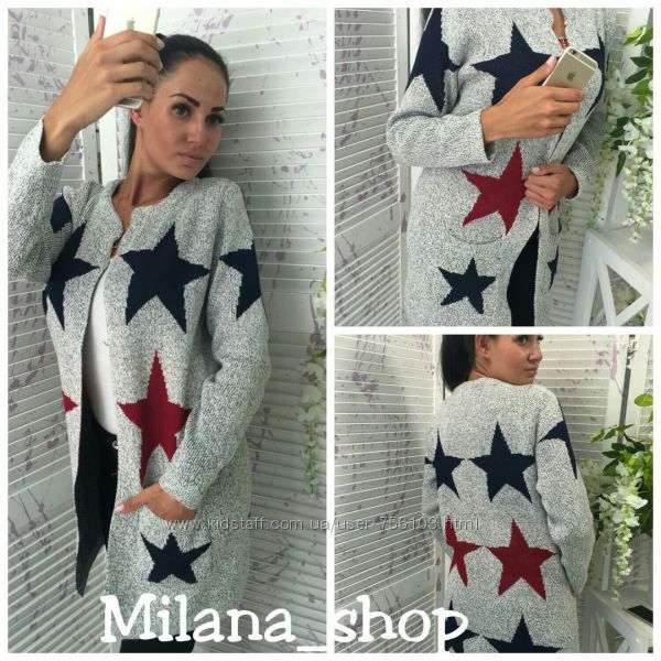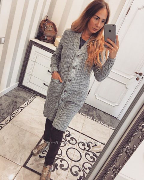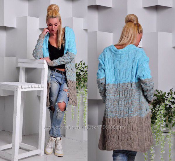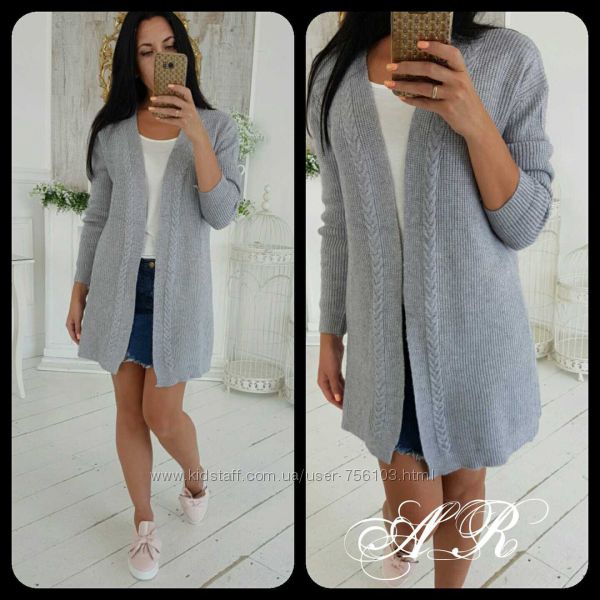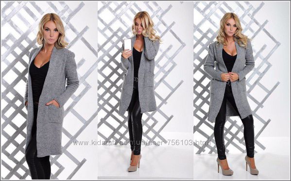 Кардиган (Фабричный Китай)№ 566 качество люкс машинная вязка кашемир размер универсальный 42/46 длина 79 см рукав 60 см цвет серый,голубой.беж.айвори