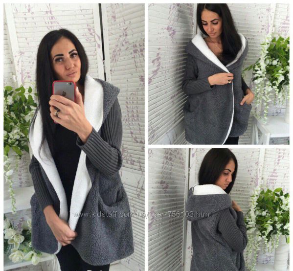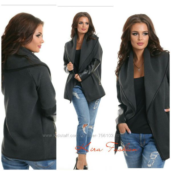 КК Мод. 7743 Теплый жакет. Ткань - ангора. Отделка - эко - кожа. Размеры: s , m. Цвета: серый , синий , мор. волна , бежевый , антрацит. Длина по спинке 65 см.