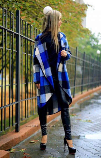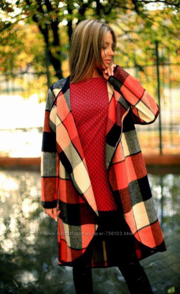 модель 903 Кардиган (пончо). Ткань - полушерсть. Модель двусторонняя, отделка - стрейч-бейка. Принт клетка. Рост модели 1.74. Цвета: 90330 - красный, 90370 - синий. размеры: 1 (42-46 универсал), 2 (46-52 универсал)