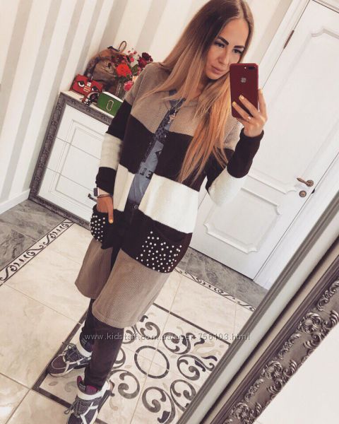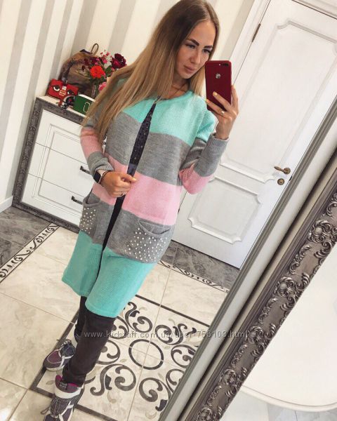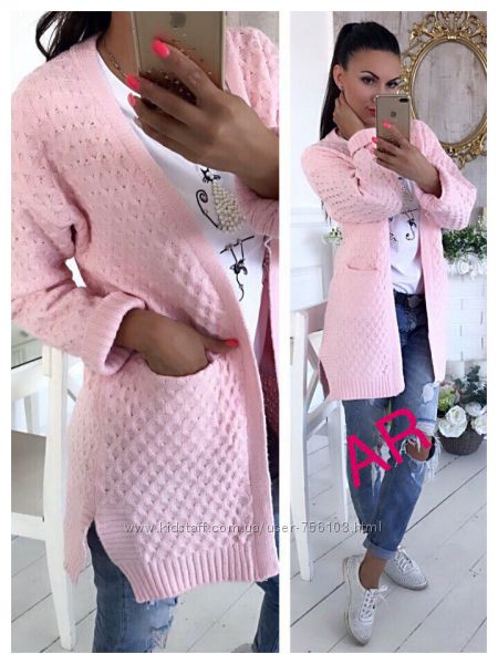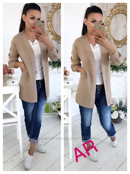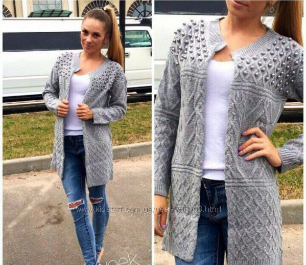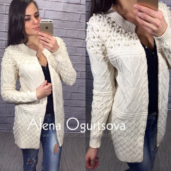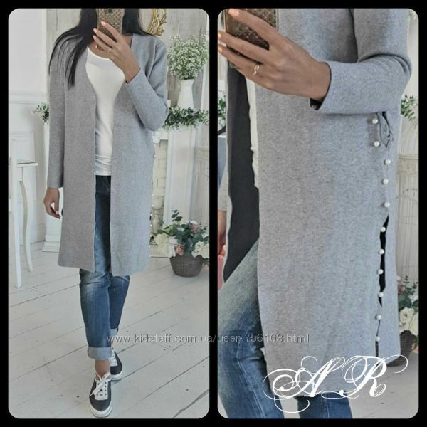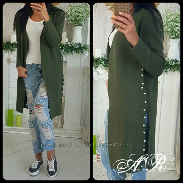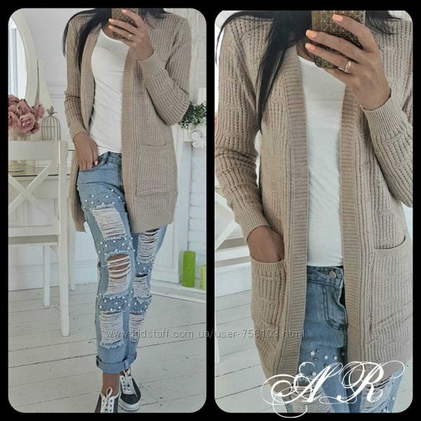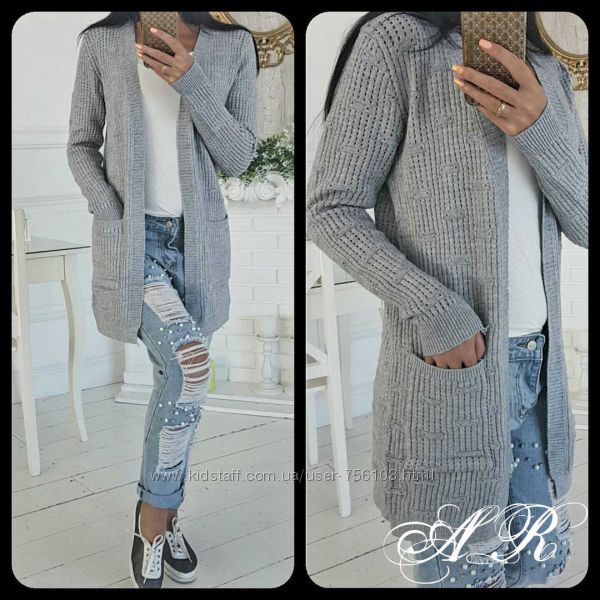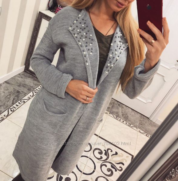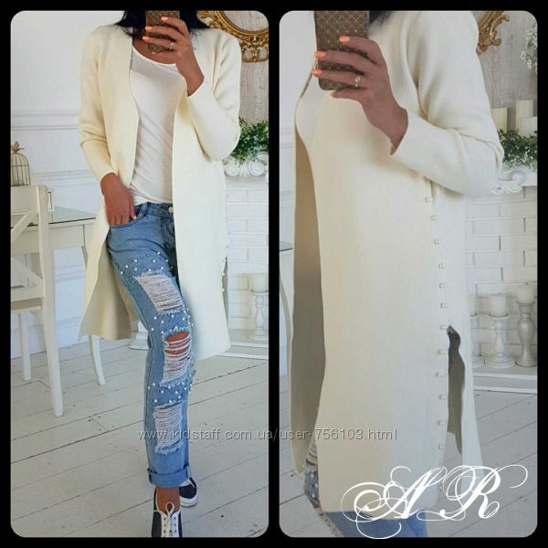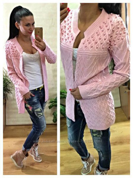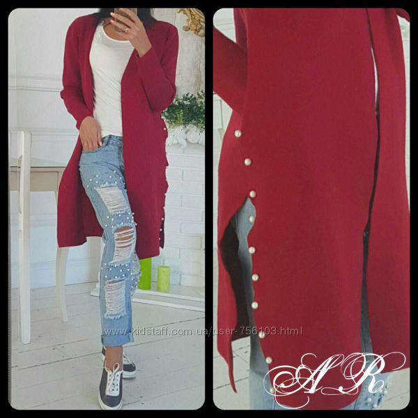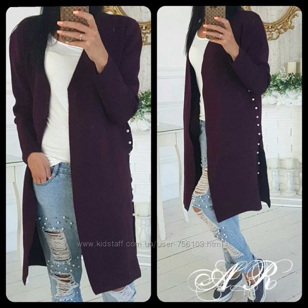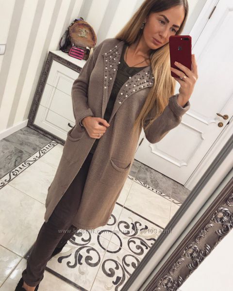 Кардиган (Фабричный Китай) плотная машинная вязка.есть арманы боковые разрезы расшиты жемчугом очень теплый размер универсальный 42/46 длина 100 см рукав 60 см 6 цветов