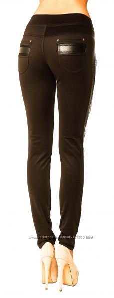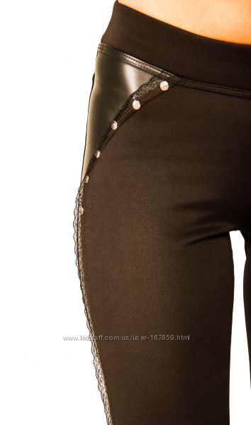 42, 44, 46, 48, 50, 52, Экокожа, Стрейч-дайвинг, Средняя, Утягивающие Леггинсы-Кожа-Кружева черные 290 грн