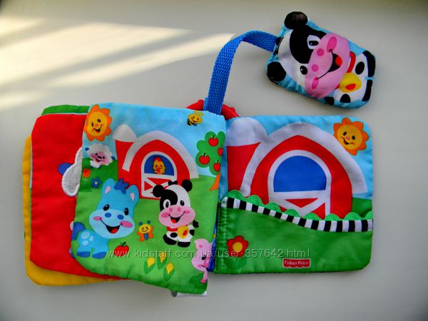 книга Fisher price 5 страничек с тактильными нашитыми аппликациями,коровка погремушка-130грн.