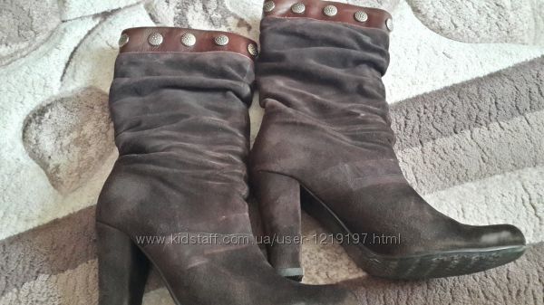 Женские натуральные замшевые сапожки Miratti - еврозима. 38 размер Натуральный замш и мех. по стельке 24,5 - 25 см 850 грн