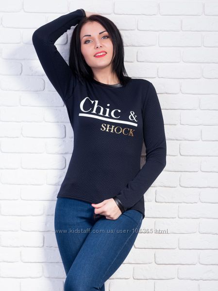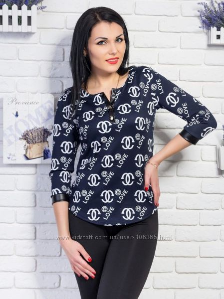 МОДЕЛЬ №965 (ЦВЕТНАЯ). Стильная кофточка с нашивкой “шанель” Материалы: трикотаж, кожзаменитель. цена 215 грн