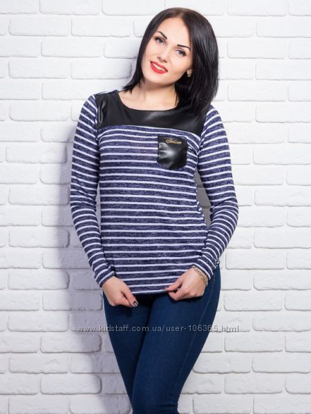 МОДЕЛЬ №1247 (ПОЛОСКА). Стильная кофточка с вставками кожзаменителя Материалы: трикотаж, кожзаменитель. цена 235 грн