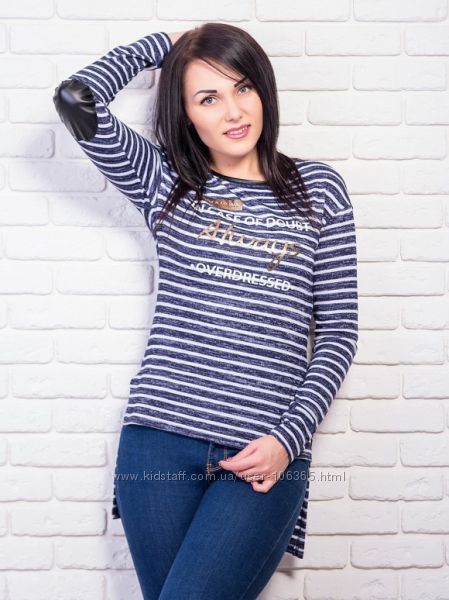 МОДЕЛЬ №1306 (ПОЛОСКА).Стильная кофточка с удлиненной спинкой Материалы: трикотаж. цена 235 грн